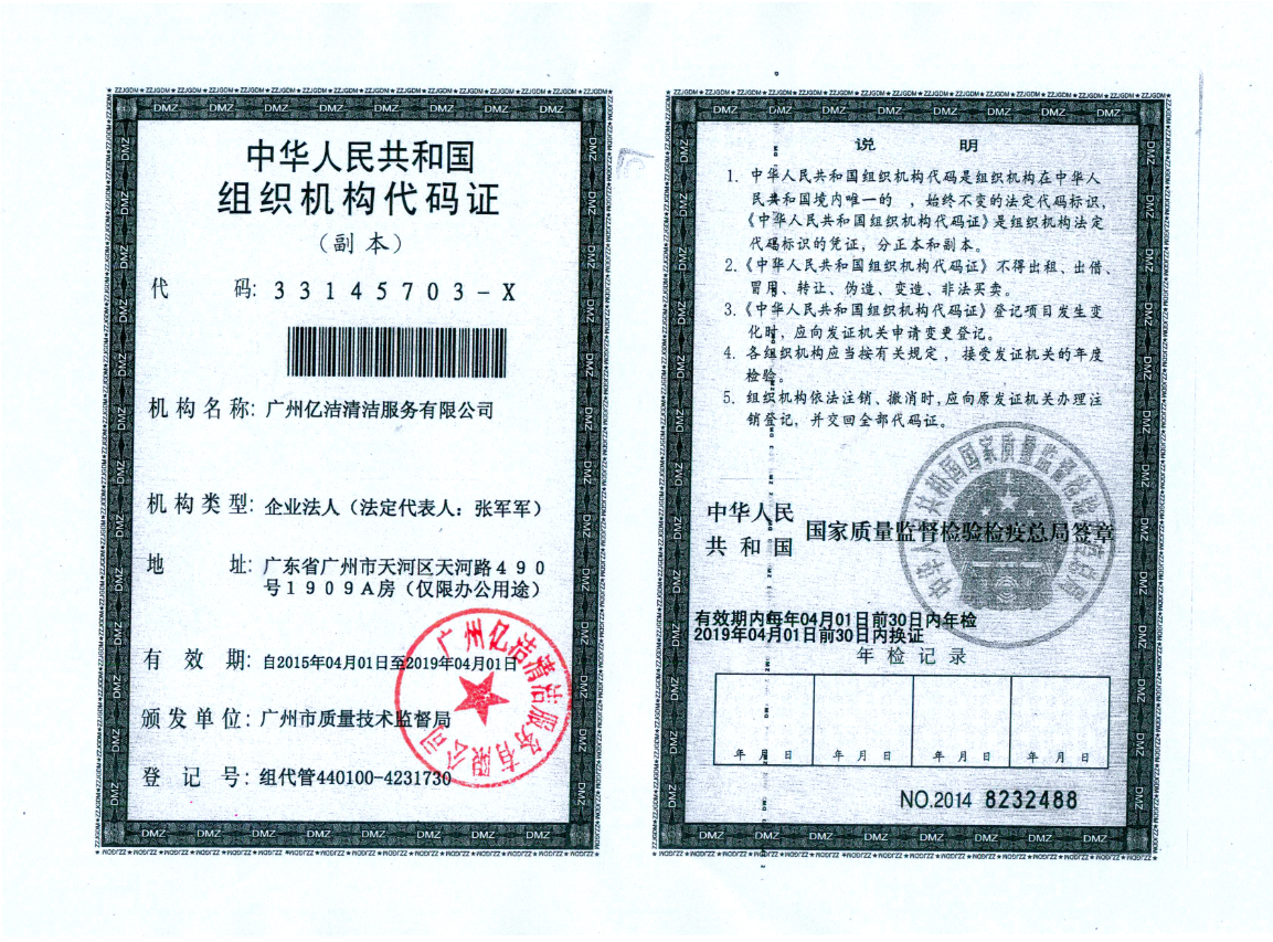 廣州億潔清潔服務有限公司是經廣州市工商行政管理局批準成立的(注冊資本:100萬元人民幣)。具有獨立法人資質。公司成立2015年,公司具備完善的管理體系和高素質管理隊伍,擁有特種技術人員33名,保潔服務人員上萬名,覆蓋廣州市,能及時調配并快速投入高效運行。我們的每個員工都經過公司的嚴格篩選,嚴格培訓,定期培訓后持證上崗以保證服務品質,保障客戶的權利,利益,形象等不受損失。 廣州億潔清潔公司是一家設備齊全,技術強大的綜合型清潔服務公司,為客戶提供完善服務尊定了堅定的基礎。 司于2010年全面推行了ISO9001質量管理體系認證和ISO14001國際環(huán)保體系認證。先后獲得廣州高層建筑外墻清洗維修作業(yè)【安全資質證書】、【廣州環(huán)衛(wèi)企業(yè)等級證書C級資質】、廣州疾控中心頒發(fā)的【四害消殺服務資質證】、【空氣治理A級資質】、中國石材協(xié)會頒發(fā)的【石材資質B級資質】等。 廣州億潔清潔服務有限公司致力于打造專業(yè)、實惠、靠譜的保潔服務公司,把專業(yè)的事情交給專業(yè)的我們,您放心! 億潔清潔服務項目: 廣州保潔服務:新建樓宇、別墅、酒店、醫(yī)院、辦公樓、賓館、企事業(yè)單位廠房竣工后開荒及裝修后精細保潔.工程保潔服務。 廣州物業(yè)托管:為廣州市各大企事業(yè)單位、賓館、政府機關、小區(qū)物業(yè)、酒店及廠房提供專業(yè)化保潔、園林、設施維護等管理服務。 廣州高空作業(yè):高空玻璃幕...[詳情]
